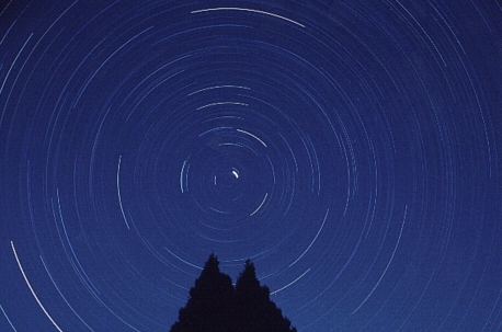 La rotazione apparente della sfera celeste, con le stelle che tracciano delle scie ad arco, è il riflesso della